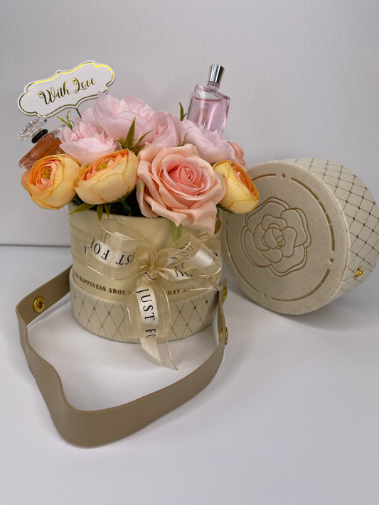 ✔ A Fusion of Scent & Beauty – Iconic perfume miniatures paired with everlasting floral designs.